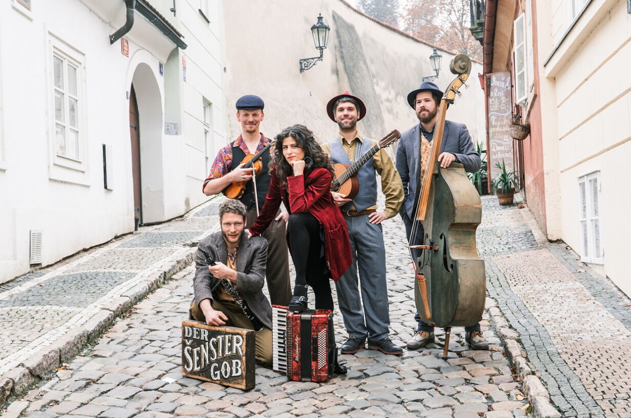 Der Šenster Gob ist eine Band aus Prag, die hauptsächlich traditionelle Zigeunermusik, jüdische Musik aus Osteuropa, Klezmermusik und Balkanmusik spielt und in einem romantischen grünen Holzwagen durch ganz Europa reist. Ihr Stil variiert von alten Klezmer-Melodien bis hin zu neueren Gypsy-Trad-Jazz-Melodien und Liedern. Sie spielen mit Energie und Erfindungsreichtum, zollen aber auch der Tradition großen Respekt. Auf ihren musikalischen Reisen haben sie ganz Europa und einen Teil Asiens durchquert und dabei jede Menge Inspiration und Erinnerungen, Lieder und musikalische Erfahrungen gesammelt. Diese Gruppe sollte niemand verpassen, der diese Art von Musik liebt! Sie bringen dich zum singen, tanzten, weinen, schmunzeln ...