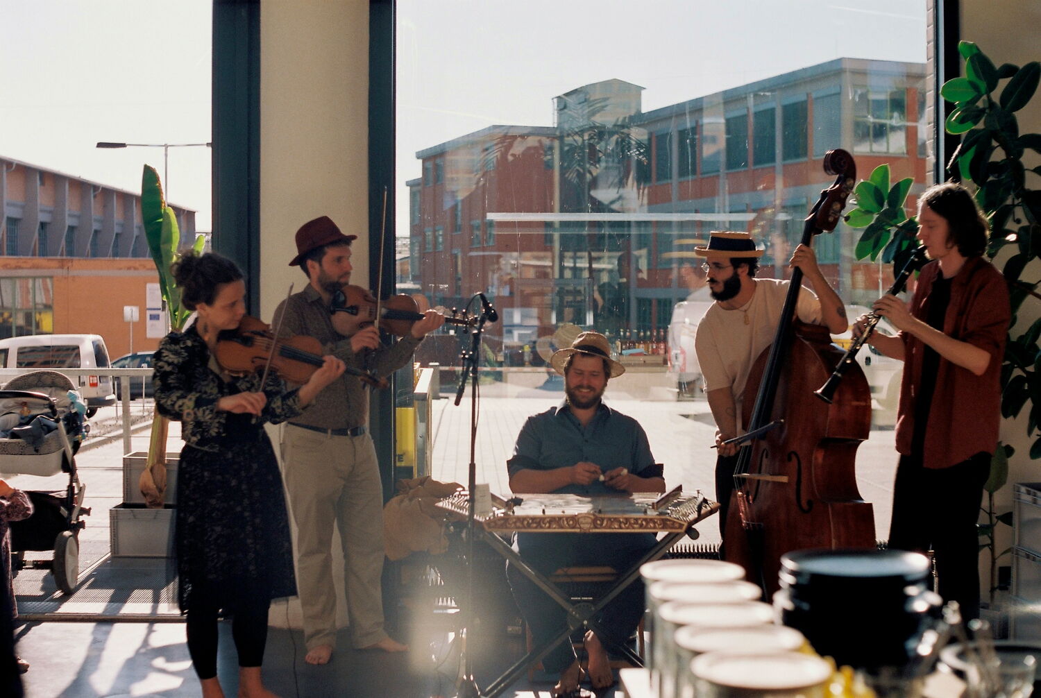 Violine, Contravioline, Klarinette, Zimbal, Kontrabass und fünf Stimmen nehmen uns mit zu einer jüdischen Hochzeit vor hundert Jahren in einer vergessenen Karpatenkneipe. L'chaim!