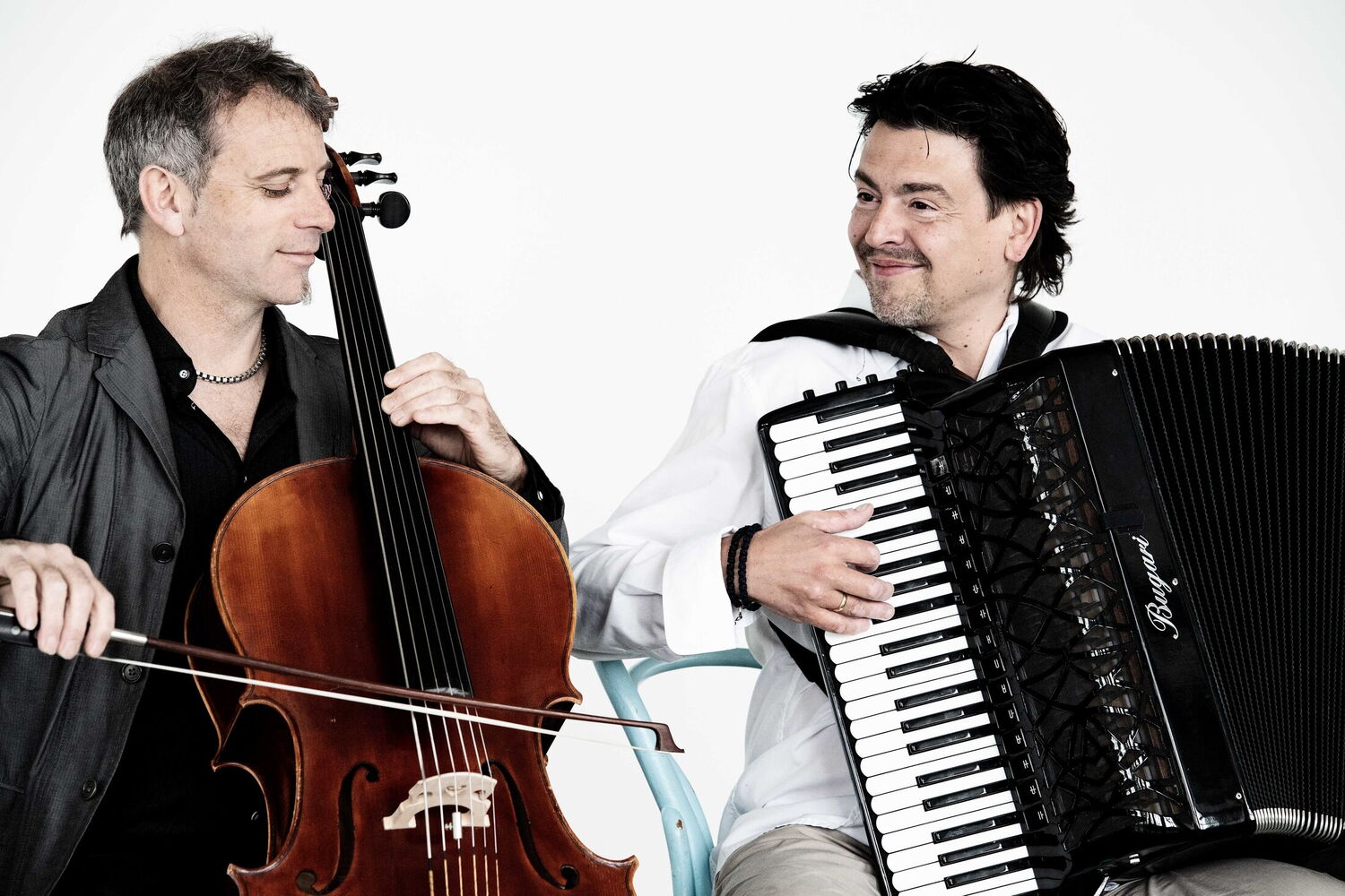 Stefan Baumann und Goran Kovacevic verbindet ihr breites Spektrum über viele musikalische Genres, ihre Lust zu improvisieren, ihr interdisziplinäres Schaffen in Tanz, Theater, Film und Klangkunst, die Liebe zur Musik und die Virtuosität auf ihren Instrumenten. Es treffen sich zwei Künstler, die beide ihre eigene Sprache entwickelt haben und sich intuitiv verstehen. Der riesige Tonumfang, der singende Klang und die stilistische Bandbreite des Akkordeons und der erdige, wehmütige und sehnsüchtige Klang des Cellos ergänzen und bereichern sich, strahlen, singen, atmen, tanzen, weinen, jubeln, flüstern, verschmelzen, versinken, funkeln, brummeln, hecheln - eine riesige Klangpalette welche die beiden Musiker ausloten und virtuos bespielen. Dabei verbinden sie persönliche künstlerische Eigenheiten und reichen musikalischen Erfahrungen von Folk über Jazz bis zu Improvisationen, und verweben diese mit Meilensteinen der klassischen Musikgeschichte. Ihr gegenseitiges Verständnis und die Musik als universelle Sprache schaffen eine grenzenlose Einheit, eine Symbiose voller Lebenslust und Übermut, zum intensiven Hören, Abtauchen und Ergründen! Musik, die berührt und bewegt!